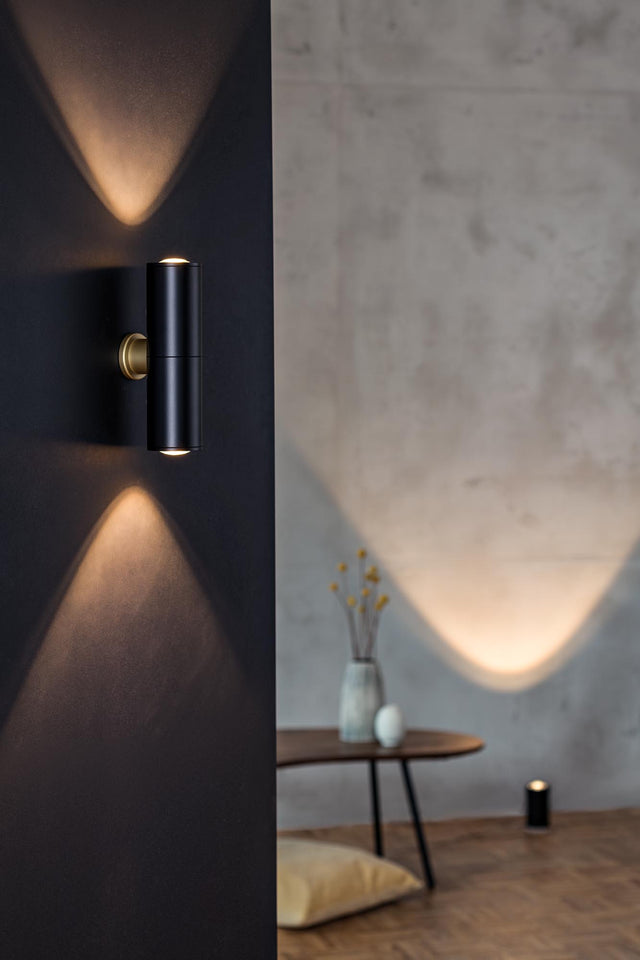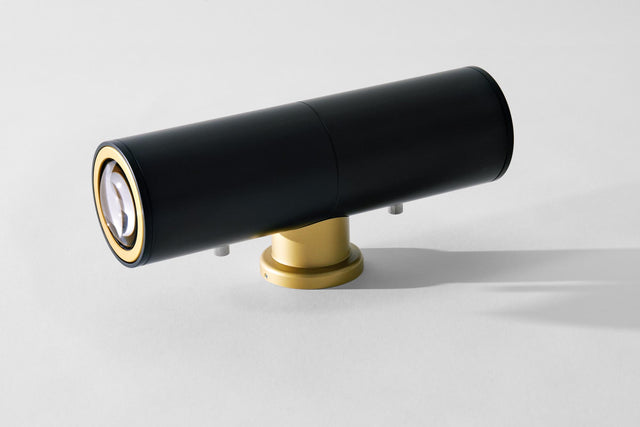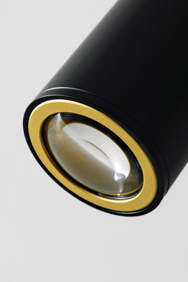 Our ATHENE wall spotlight has 2 separately focusable light heads. The beam angle can be continuously adjusted from 50 - 90° using a glass lens optic and a side slider. The light body is made of aluminium and includes the phase-dimmable power supply.
