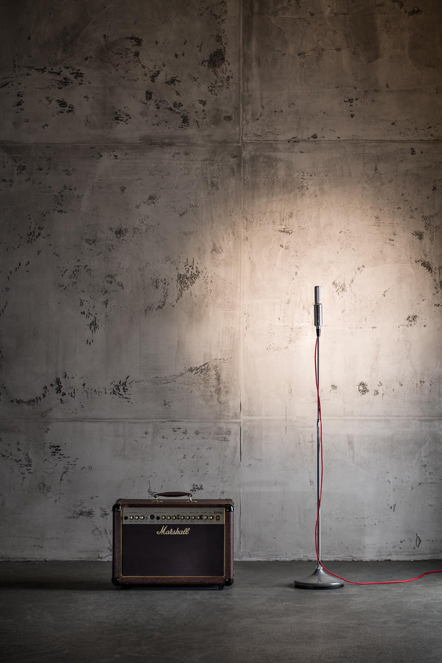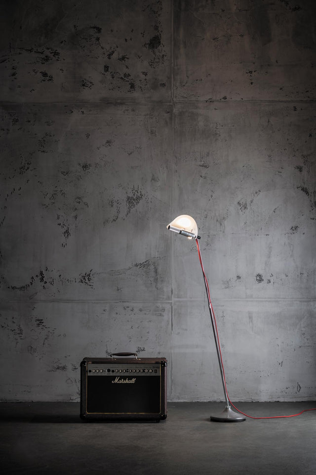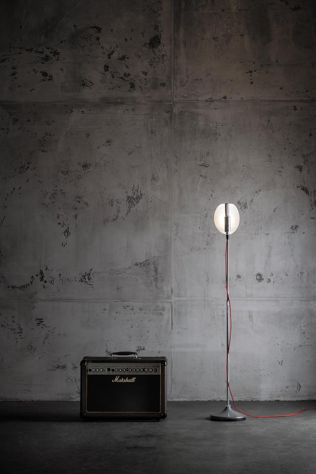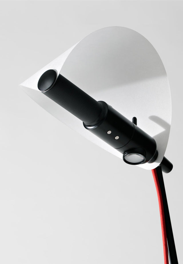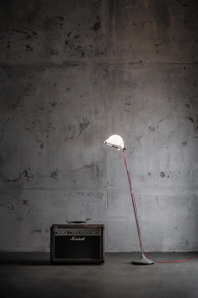 Our STEREO floor lamp has 2 light sources. Both have a beam angle of 85° and can be rotated separately by 360° on the lamp head. The two touch dimmers on the lamp head control the two light sources. The light sail, which can be optionally mounted on the lamp head, absorbs the light and creates a pleasant ambient light. The lamp head can be positioned either vertically or horizontally on the height-adjustable telescopic standpipe. This is guided on the solid concrete base and can be tilted by 10°. The multifunctional reading lamp thus becomes an atmospheric light sculpture. The 250 cm supply cable with USB plug is covered with a red textile.