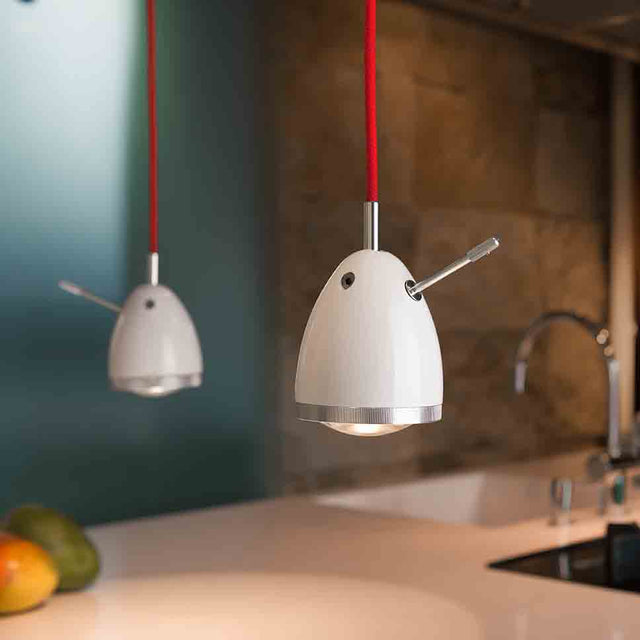 Our YLUX pendant light has a focusable light head. The beam angle can be continuously adjusted from 60 - 90° by turning the lampshade using a glass lens optic. The optional double lens system reduces the beam angle to 20°. The magnetic bicolour canopy cover (one side black, one side white) offers flexible mounting options. It enables variable spacing of the pendants. The body itself is covered with black cellular rubber, which compensates for uneven ceilings and allows flexible lateral power supply if required.