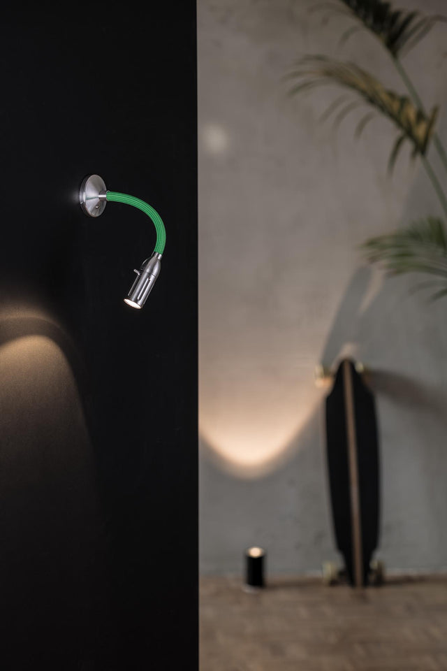 Our ZEUS wall/ceiling light has a focusable light head. The beam angle can be continuously adjusted from 30 - 85° by turning the lampshade using a glass lens optic. The flexible shaft can be flexibly adjusted to any position. It sits on a solid aluminium base and is optionally covered with a coloured textile. The LED can optionally be dimmed via Phase, Dali, Casambi or a touch dimmer on the base.