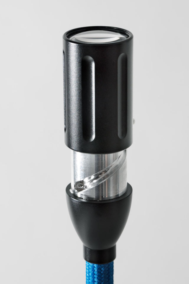 Our ZEUS wall light has a focusable light head. The beam angle can be continuously adjusted from 30 - 85° by turning the lampshade using a glass lens optic. The flexible shaft can be flexibly adjusted to any position. It sits on a solid aluminium base and is optionally covered with a coloured textile. The base can be rotated 360° during installation. The LED can optionally be dimmed using Phase, Dali, Casambi or a touch dimmer on the base.