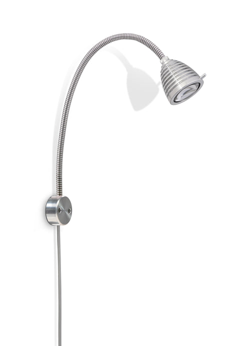 Unsere ATHENE Wandleuchte verfügt über einen fokussierbaren Leuchtkopf. Der Abstrahlwinkel kann mittels einer Glaslinsenoptik durch Drehen des Leuchtschirmes stufenlos von 40 - 90° eingestellt werden. Die Flexwelle ist in jegliche Position flexibel einstellbar. Sie sitzt auf einem massiven Aluminiumsockel und ist optional mit einem farbigen Textil überzogen. Die Leuchte wird über einen Schnurschalter geschaltet und über ein Steckernetzteil mit Strom versorgt.