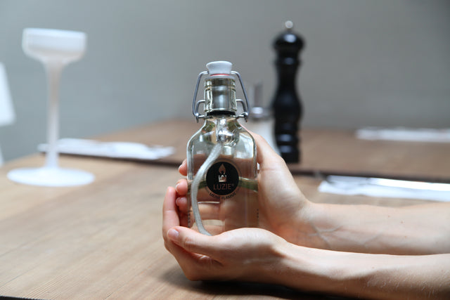 LUZIE ist eine innovative Designer-Öllampe im modernen Glasdesign. Das ideale Licht für drinnen und draußen. LUZIE passt als stylisches Wohnaccessoir hervorragend zu jeder Einrichtung. Auch im Garten ist die stimmungsvolle Öllampe die perfekte Alternative zu herkömmlichen Kerzen. Eine ideale Mischung aus Fackel und Windlicht. Wiederverschließbar, nachfüllbar, verstaubar – einfach praktisch.